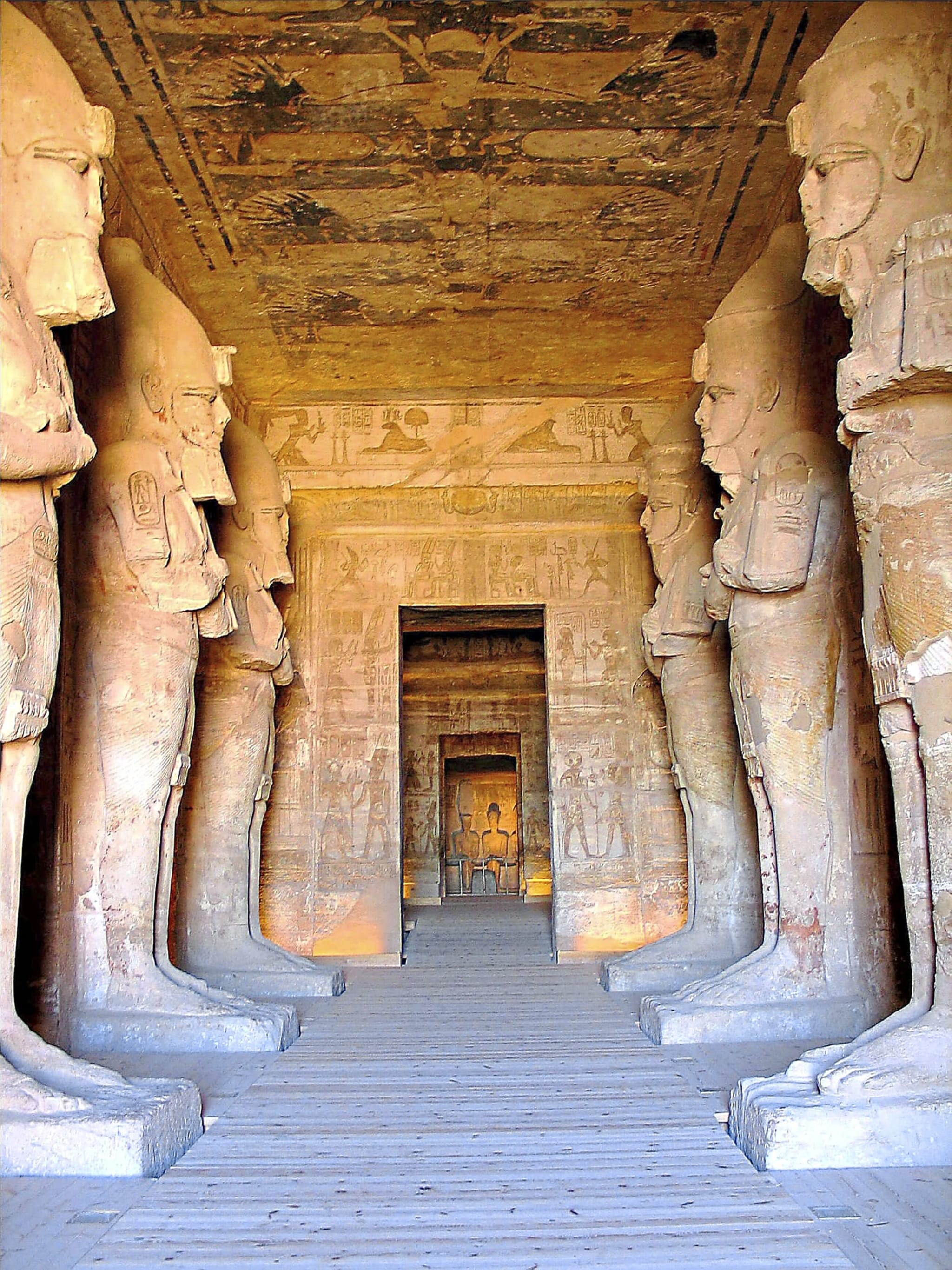 Optional (buchbar vor Ort) haben Sie die Gelegenheit, eine der eindrücklichsten Tempelanlagen anzuschauen – Abu Simbel. Es ist unglaublich beeindruckend, wenn Sie vor den vier 22 Meter hohen Sitzkolossen stehen. Sowohl diese mächtigen Sitzkolosse als auch das Tempelinnere wurden direkt aus dem Felsen gemeisselt. Abu Simbel besteht aus zwei Felsentempeln. Der Grosse wurde zum Ruhm des Pharao Ramses II errichtet und der Kleine ist der Himmelsgöttin Hathor und der Gemahlin von Ramses II, Nefertari, gewidmet. Das Ziel Kadesch einzunehmen hat Ramses II nicht erreicht. Trotzdem liess er das ganze als Sieg seiner Truppen darstellen und setzte sich deshalb ein Denkmal mit den Tempelanlagen von Abu Simbel. Die Tempelanlagen drohten durch den Bau des Assuan-Staudammes in den Fluten des Nasser-Sees zu versinken. In den Jahren 1963-1968 wurden die Tempel in einer von der UNESCO durchgeführten Aktion in 1'036 bis zu 30 Tonnen schwere Blöcke zersägt und 64 Meter höher und 180 Meter landeinwärts wieder aufgebaut.