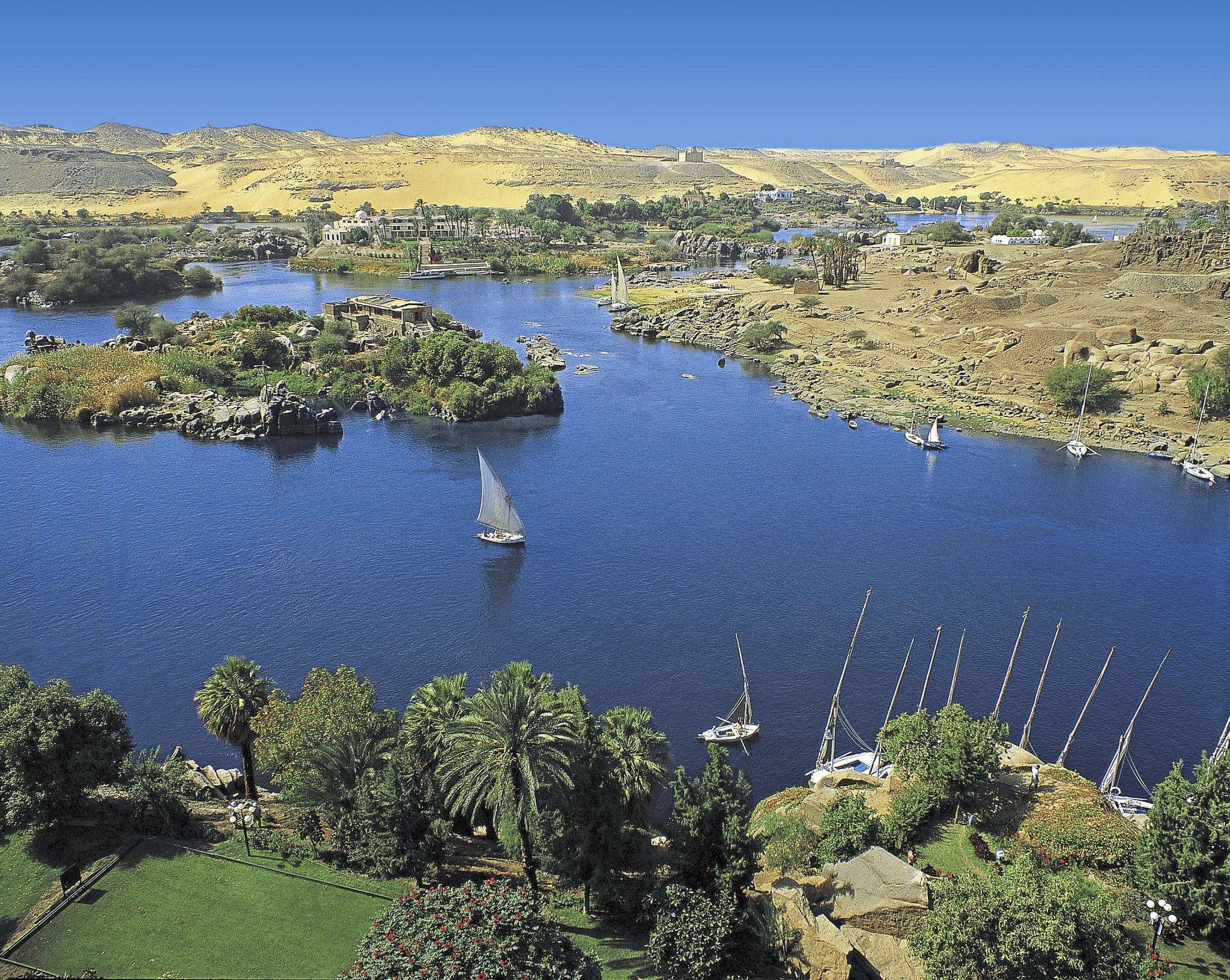 Früh morgens verlassen Sie das pulsierende Kairo. Transfer zum Flughafen und Flug (ca. 1h 30 Minuten) nach Assuan, die südwestlichste Grossstadt Ägyptens. Aufgrund seiner Lage unterhalb des nördlichsten Katarakts am Nil markierte Assuan die traditionelle Südgrenze Ägyptens mit dem Rivalen Nubien. Die nubische Kultur hat auch Südägypten geprägt.