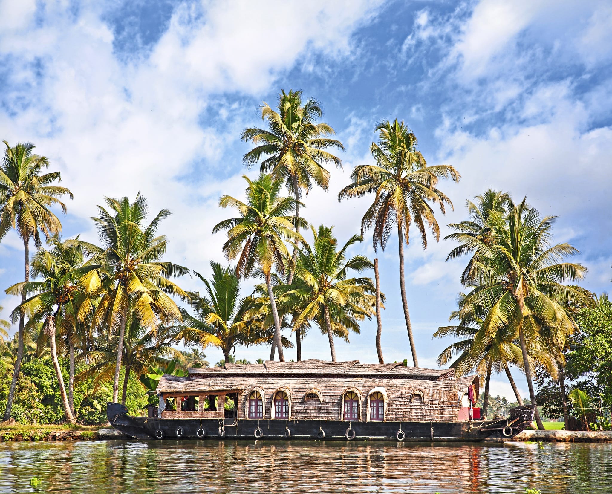 Fahrt nach Alleppey und Einschiffung auf ein traditionelles Hausboot.