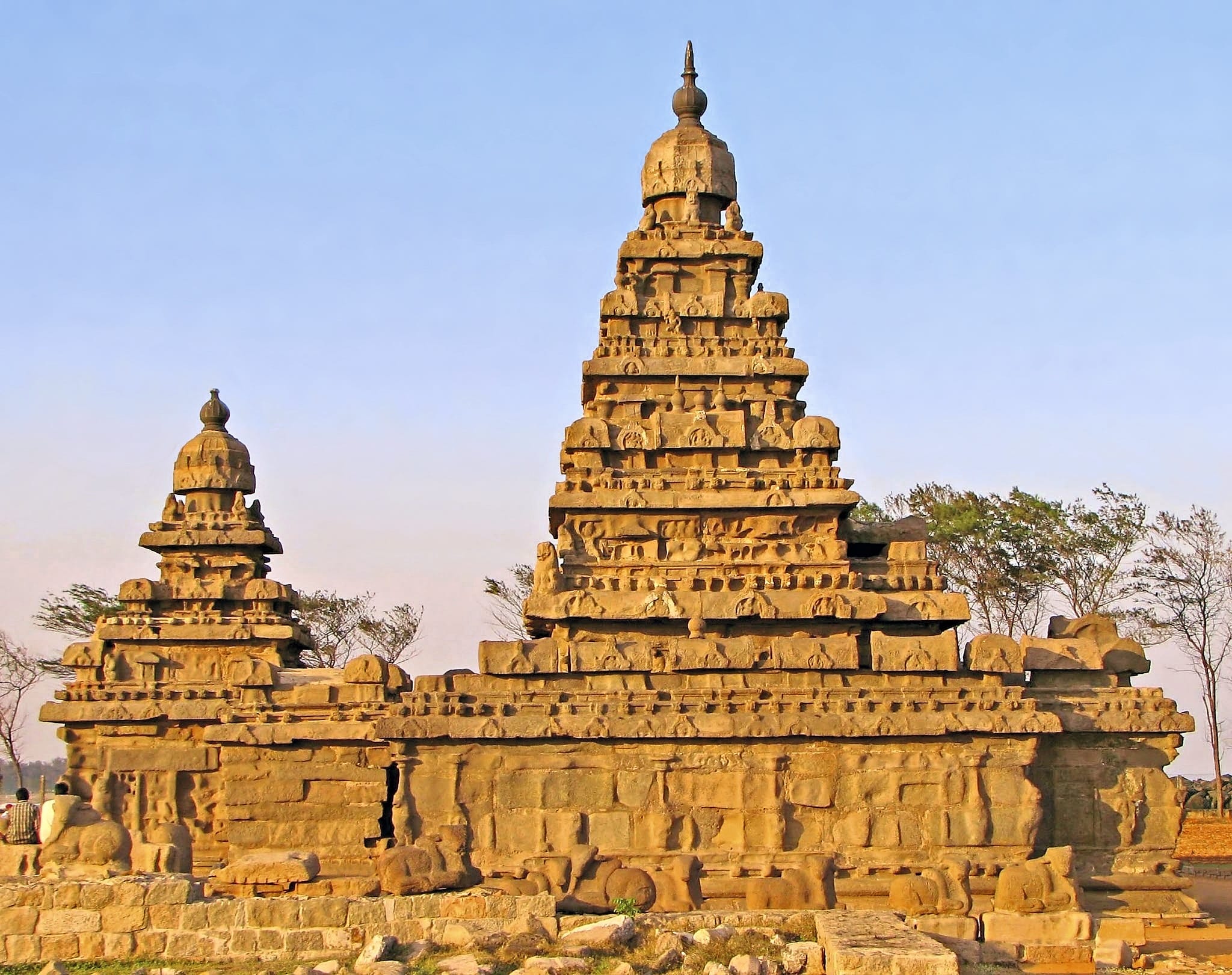 Zuerst erreichen Sie Mamallapuram, ein UNESCO-Weltkulturerbe. Erkunden Sie die prächtigen Felsentempel und kunstvollen Schnitzereien, darunter die «Fünf Rathas», monolithische Tempel in Form von Streitwagen. Bestaunen Sie den spektakulären «Shore Temple» am Meer und das gigantische Basrelief «Bhagiratha's Penance» mit seinen unzähligen Figuren.