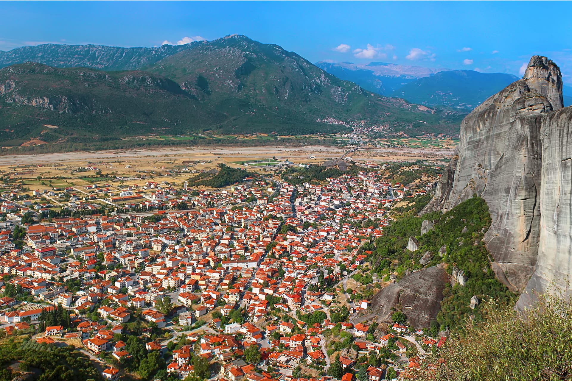 Kalambaka, das Tor zu den Meteora-Gipfeln, ist eine geschichtsträchtige und traditionelle Stadt im Herzen Griechenlands, deren Ursprünge auf das antike Griechenland unter dem Namen Aeginio zurückgehen. Später wurde sie zu einem wichtigen religiösen Zentrum, in dem die ersten Kathedralen und Kirchen gebaut wurden. Während des Osmanischen Reiches erhielt die Stadt ihren heutigen Namen "Kalambaka", was so viel wie "starke Festung" bedeutet, und wurde zu einem wichtigen Handelszentrum.