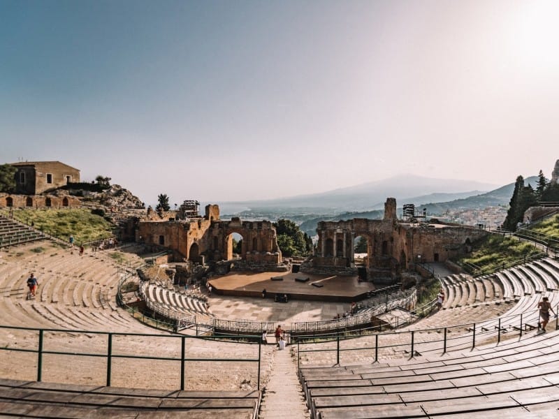 Taormina ist eine spektakuläre Stadt voller historischer Juwelen und mit zauberhafter Aussicht auf das Mittelmeer und den Ätna. Die Hauptsehenswürdigkeit ist das antike griechische Theater, das einen Tagesausflug wert ist. Man kann die Zeit aber auch mit Bummeln durch die stimmungsvollen Strassen der Altstadt verbringen. Gehen Sie auch ans Meer und entspannen Sie am Strand von Mazzarò oder verbringen Sie einen Nachmittag in der Sonne auf der Isola Bella, die nur durch einen winzigen Sandstreifen mit dem Festland verbunden ist.