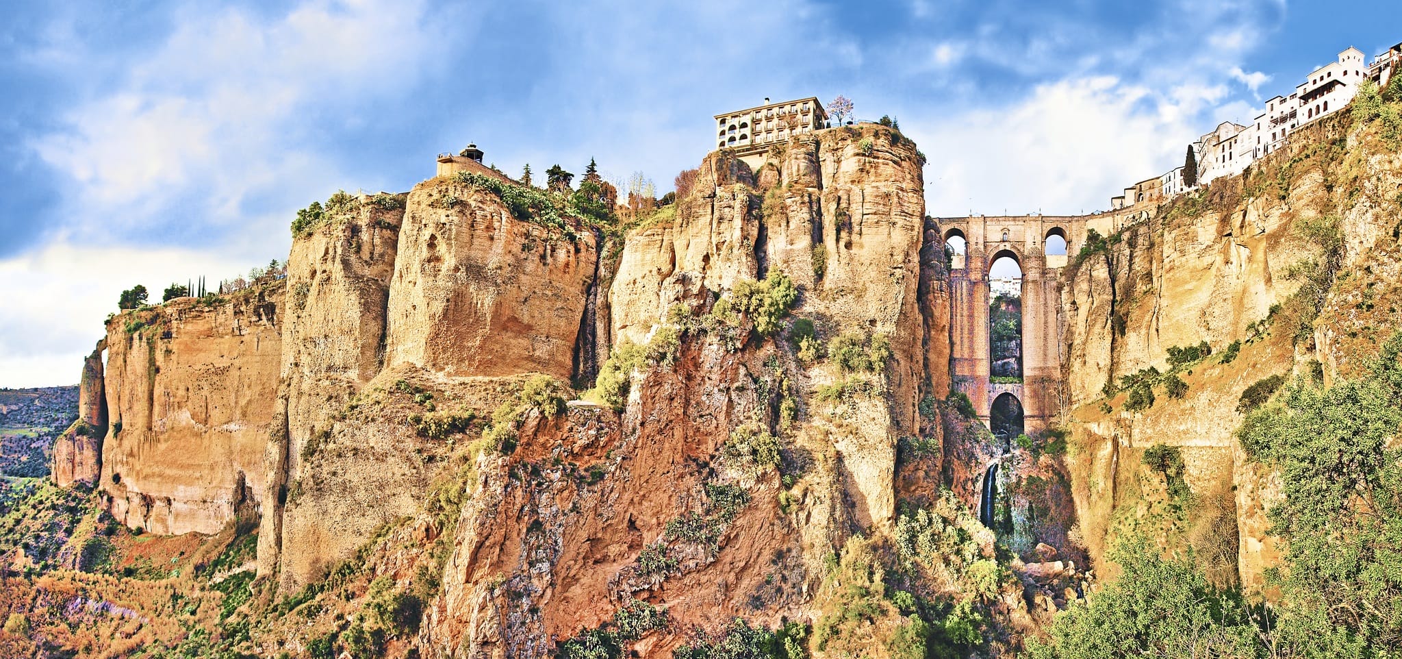 Das weisse Bergdorf bietet eine Vielzahl an Möglichkeiten, den restlichen Tag zu verbringen. Die vielen Handwerkerläden, die Schokoladenfabrik aber auch der einmalige Blick über die ganze Costa del Sol von einem der verschiedenen Aussichtspunkte aus, machen das Städtchen so reizvoll. Auf dem „Paseo de la Muralla“ lässt es sich herrlich spazieren. Wer gerne feines Glace probieren möchte, sollte das „Happiness Laboratory“ besuchen.Die Stadt, welche früher aufgrund ihrer hervorragenden Lage auf einem Felsplateau als uneinnehmbar galt und auf einer Höhe von 723 m über dem Meeresspiegel liegt, besticht durch ihre wunderschöne, mit Kopfsteinpflaster ausgestattete Altstadt. Die Neu- und Altstadt werden durch die beeindruckende Puente Nuevo – die neue Brücke – verbunden. Diese einzigartige Brücke wurde im 18. Jahrhundert erstellt und erstreckt sich in einer Höhe von 120 Meter über die Schlucht El Tajo. Sie gilt als Wahrzeichen der Stadt. Bauherr war der Spanier José Martín de Aldehuela. Um ihn rankt sich die Legende, er habe sich nach der Fertigstellung des Puente Nuevo von deren Höhe ins Tal hinab in den Tod gestürzt, weil er sich sicher war, nie mehr in seinem Leben eine solche architektonische Meisterleistung von majestätischer Schönheit zu bauen. Ob was dran ist, das lässt sich nicht endgültig klären. Weitere bekannte Sehenswürdigkeiten der Stadt sind die Stiftskirche Santa Maria la Mayor, die Stierkampfarena Rondas, eine der ältesten Europas, und das Adelhaus Don Bosco. Der modernistische Palast wurde Anfang des 20. Jahrhunderts gebaut und besitzt Beispiele der regionalen Keramikkunst.