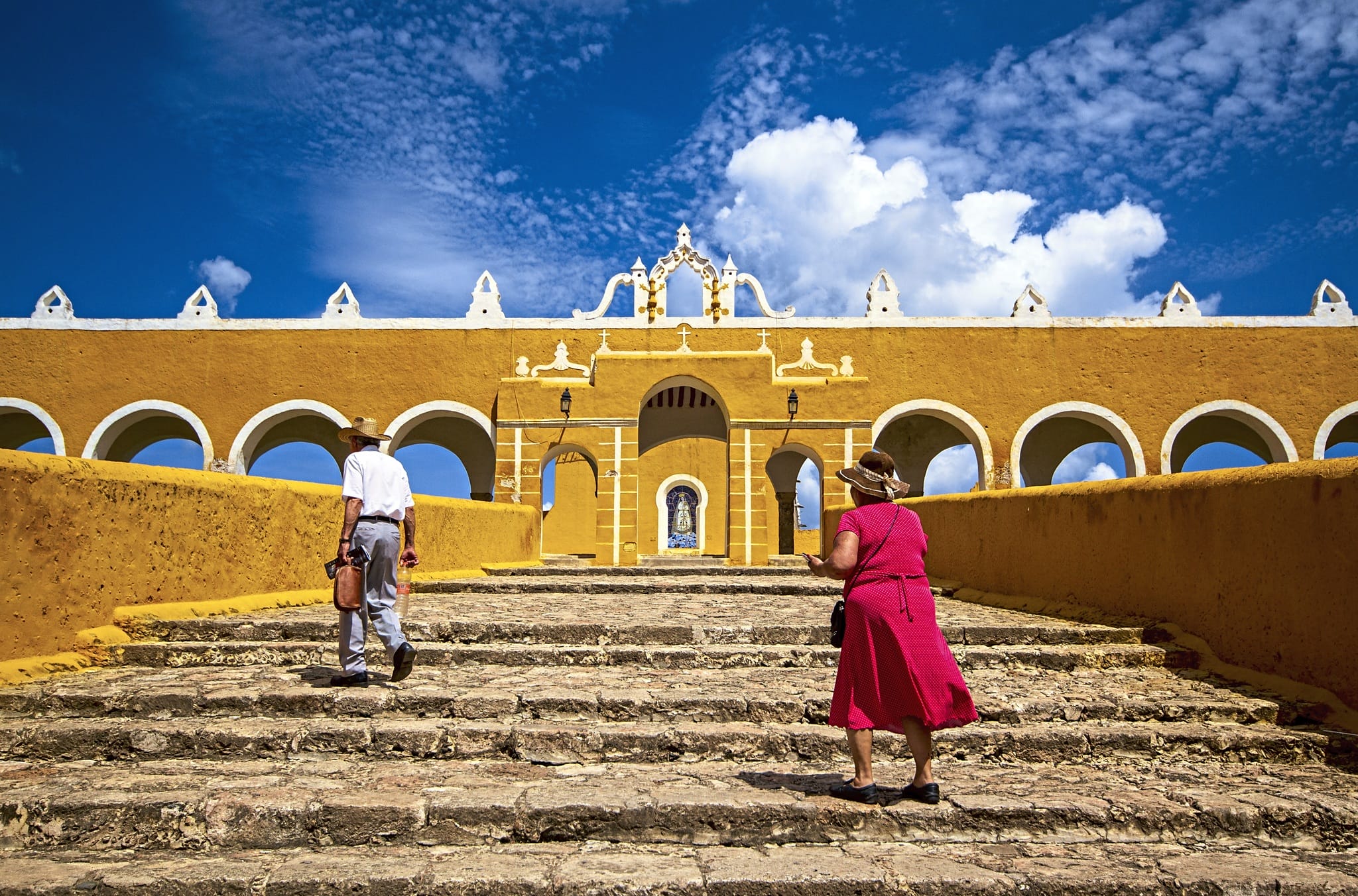 Danach setzen Sie Ihre Reise fort zum Cenote Yokdzonot, wo Sie ein erfrischendes Bad im hellblauen Wasser nehmen können. Rund um den Cenoten finden Sie ein noch typisches Mayadorf der Yucatán, das mit Unterstützung der Regierung den Wasserspeicher pflegt, das kleine Restaurant betreut und so das Einkommen der Bewohner sichert. Bevor Sie in Mérida ankommen, besuchen Sie Izamal, die kleine Kolonialstadt, die hauptsächlich aus gelb gestrichenen kolonialen Gebäuden und dem alten schönen Franziskanerkloster besteht.