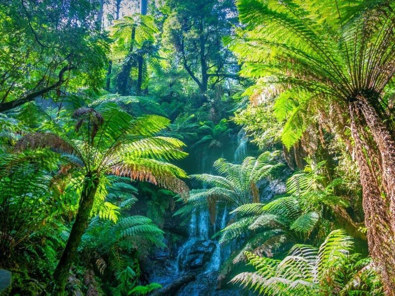 Weiterfahrt Richtung Süden zum Tarra Bulga Nationalpark: hier erwartet Sie eine grün leuchtende Landschaft, die mit Baumfarnen übersät ist, nur unterbrochen von magischen Wasserfällen. Entdecken Sie Eukalyptus-Primärwalder, die einst die gesamte Region bedeckten. Auf dem Fern Gully Nature Walk können Sie farnbewachsene Schluchten, hoch aufragende Bäume, plätschernde Bergbäche und glitzernde Wasserfälle entdecken.
