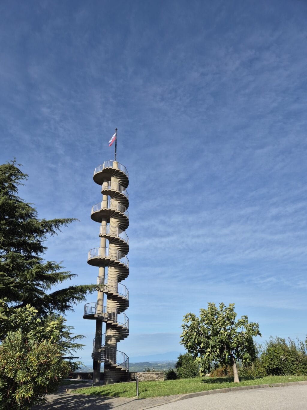 Bei herrlichem Herbstwetter starten wir am Morgen unsere Weiterfahrt in Richtung Brda. Zunächst erklimmen wir – wer will – den Aussichtsturm Gonjače. Der Wind weht uns kräftig um die Ohren, doch der Panoramablick über die Weinregion ist atemberaubend. Nur unweit entfernt liegt das malerische Dorf Šmartno. Ein kleiner Spaziergang durch den Ort und ein Blick in die kleine Dorfkirche lassen uns mehr über das ländliche Leben Sloweniens erahnen. Kleine Marktstände und lokale Läden bieten hausgemachte Geschenkideen an.